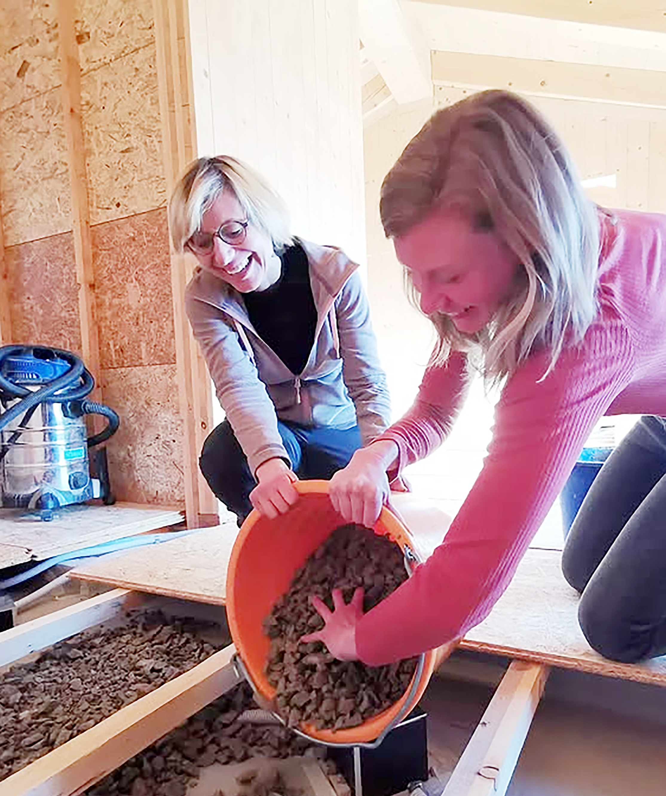 As a plastic-free alternative, Dr. Silvia Barbero and I layered locally sourced limestone gravel under the second-story floorboards for sound insulation and thermal mass during a Polytechnic of Turin PhD workshop